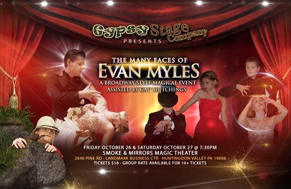 According to Evan’s representation, Gypsy Stage Company, “We look forward to giving audiences a sneak-peek into Evan’s magic and to then invite them to enjoy even more magic the following weekend at Smoke & Mirrors Magic Theater on October 26 and 27 in Huntingdon Valley Pennsylvania.” Evan will be performing his full Broadway-style show entitled, “The Many Faces of Evan Myles”.
